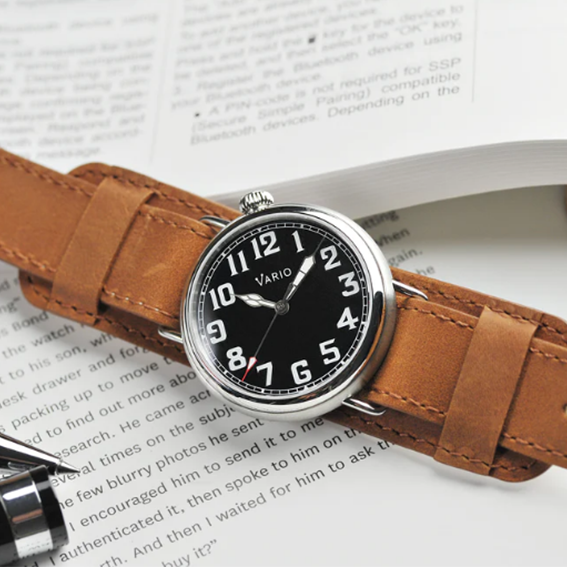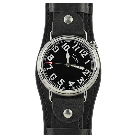 The 1918 Pilot is a re-imagined issue of a pilot's watch in the early 1900s. Its simple, cock-eyed dial provides perfect legibility for when one is navigating. It also features an exposed caseback showcasing the mechanical movement within. Straps are configurable based on preference.