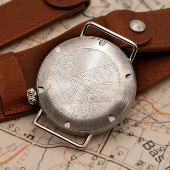 The 1918 Trench is a re-imagined issue of a trench watch in the early 1900s. It features an enamel dial with contrasting hands and indices along with a second sub-dial. Straps are configurable according to preference.
