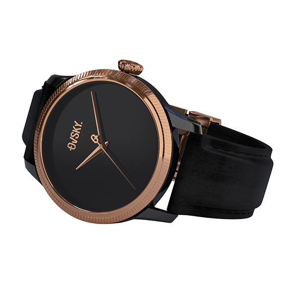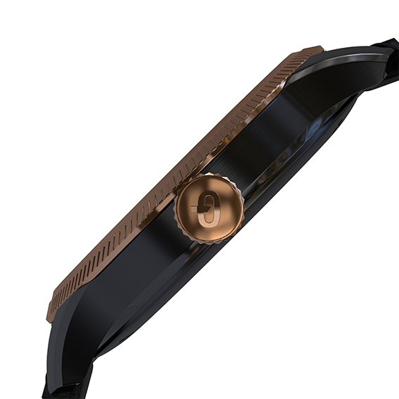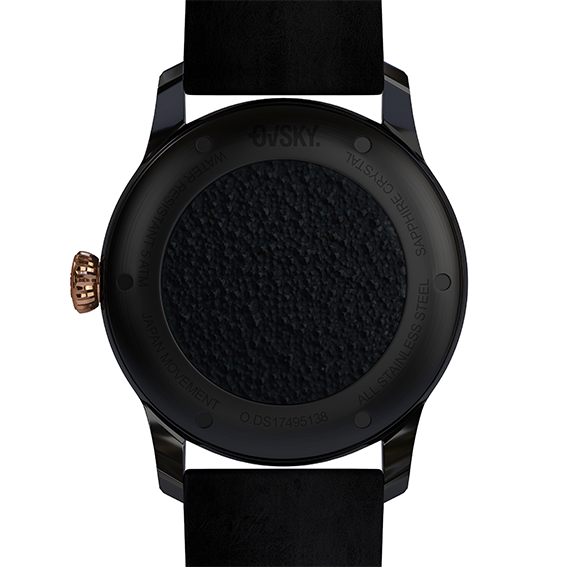 The Dark Stargazer features a glossy black dial with black & gold PVD case and hands. It is unisex and powered by a hybrid quartz movement.