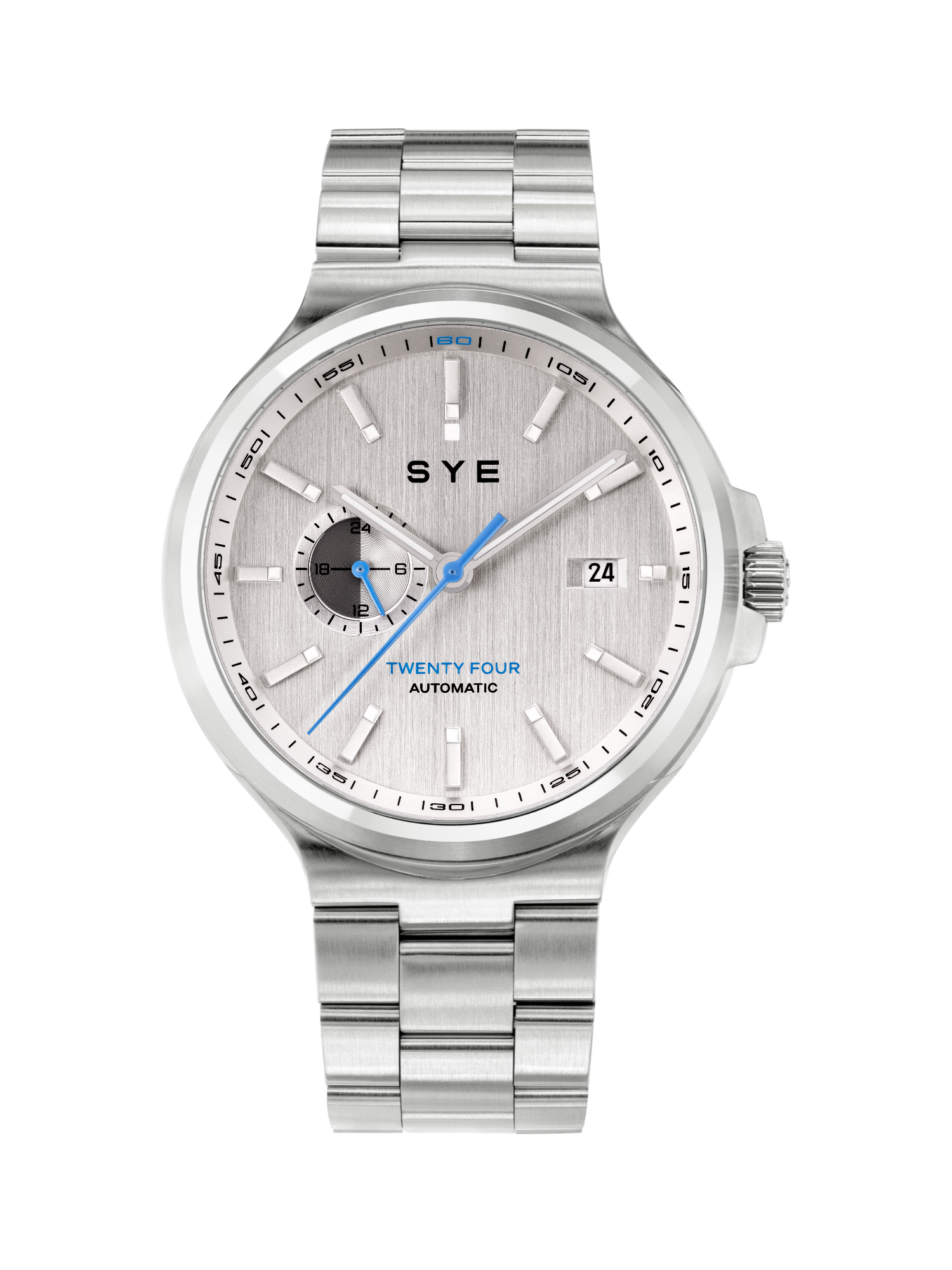 Part of the foundational pieces for the brand, the Chronograph Silver dial features a clean brushed brass dial and date window at 3.